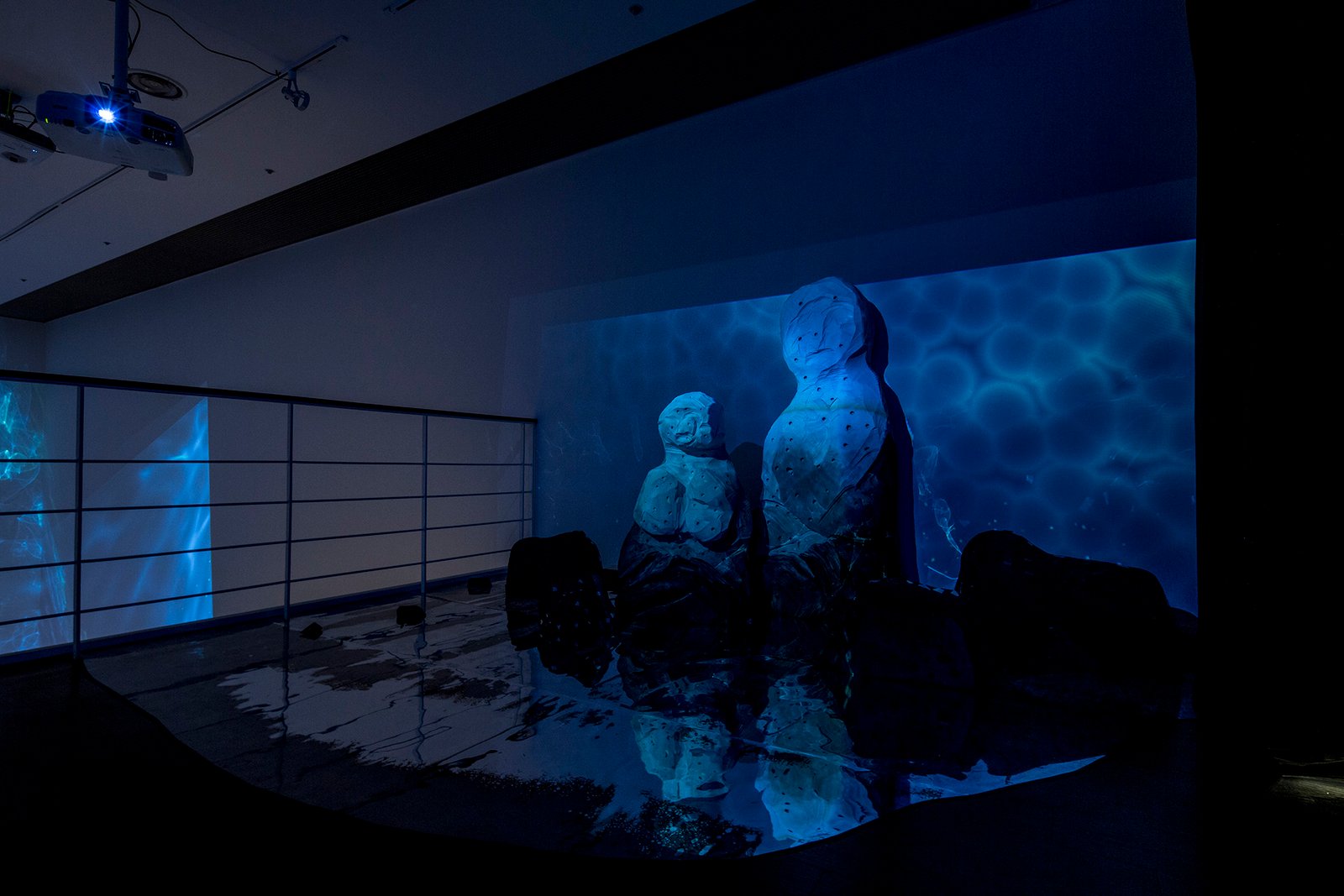 가령 ‘어멍 바다’의 핵심 소재인 ‘거울’은 존재를 투영하는 본래의 역할을 넘어 옛 선인들의 지혜를 전달하는 매개로서 작용하며, ‘디지털 이미지’는 작가의 세계관을 반영한 가상 공간을 구축해 보다 원활한 소통이 일어나도록 돕습니다.
